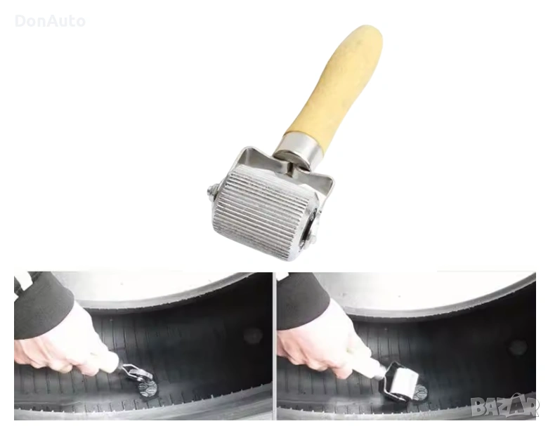 Практичен ролер за лепене на гуми, предназначен за автомобили и мотоциклети. Използва се за компактиране на лепенки при лепене на гуми, за да прилепнат бързо и здраво върху повредената част от гумата.
