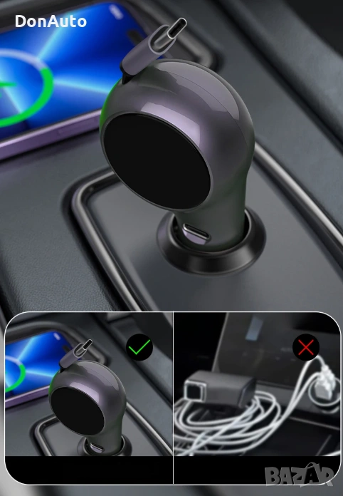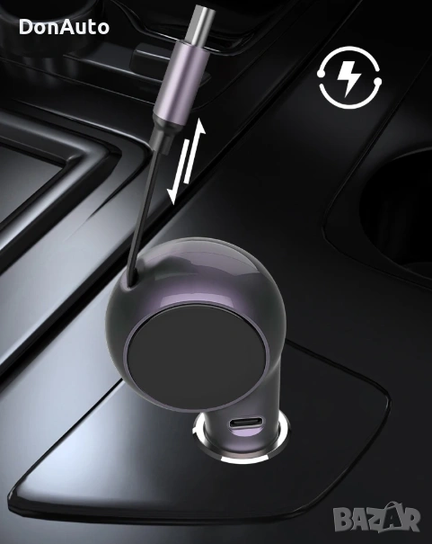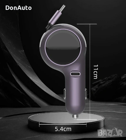 Мощно ролетно автомобилно зарядно 120W с двойни Type-C портове и вграден удължаващ се кабел, съвместимо с iPhone, Huawei, Samsung и други устройства. Поддържа PD и QC3.0 бързо зареждане, за да осигури максимална скорост при зареждане в движение.
