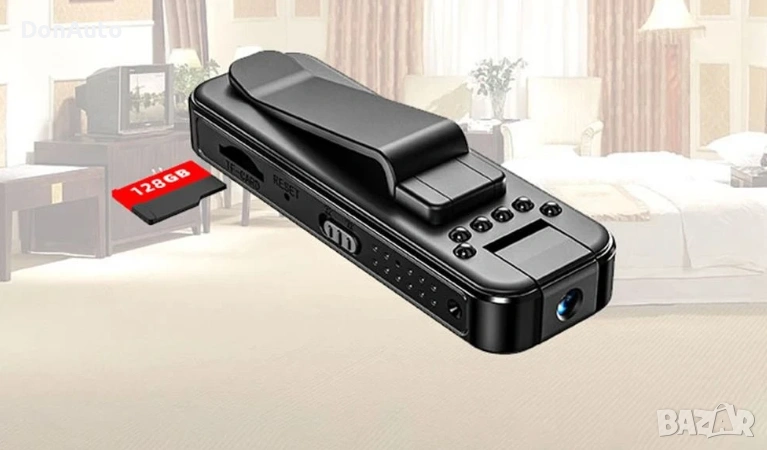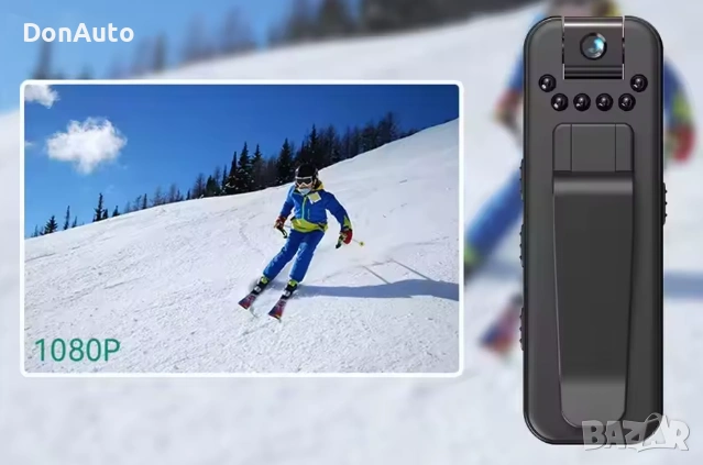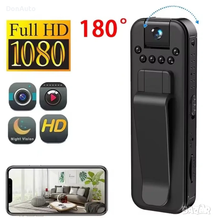 Компактна 1080P HD мини камера, идеална за видеозапис, наблюдение и полицейски / охранителни цели. Поддържа нощно виждане, запис на видео и аудио, с вграден микрофон и високочувствителен CMOS сензор.