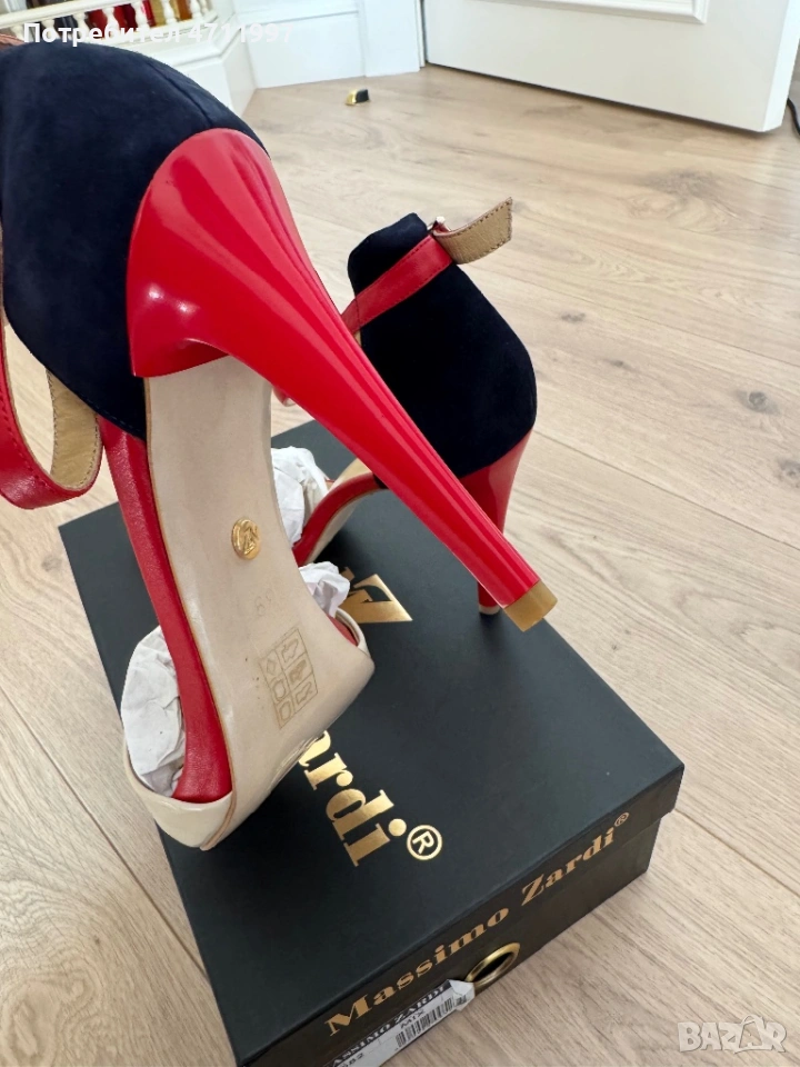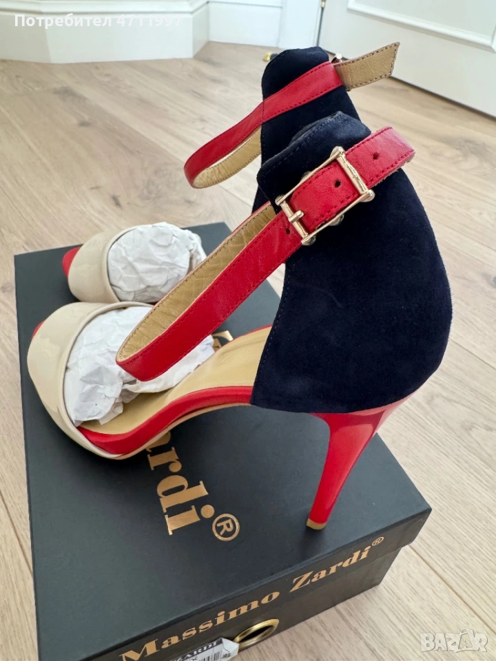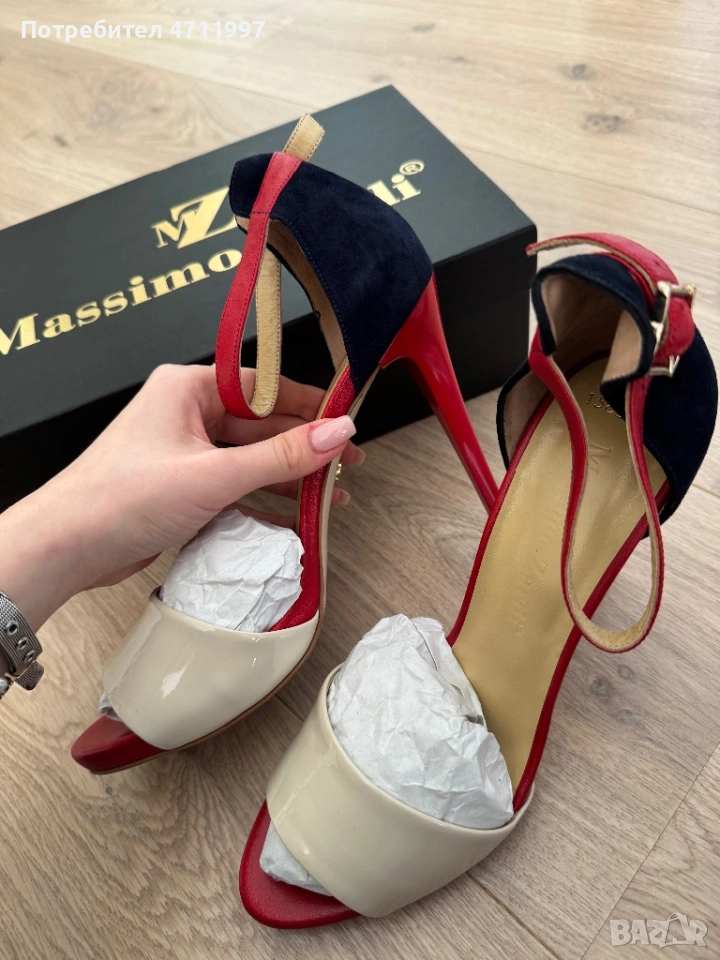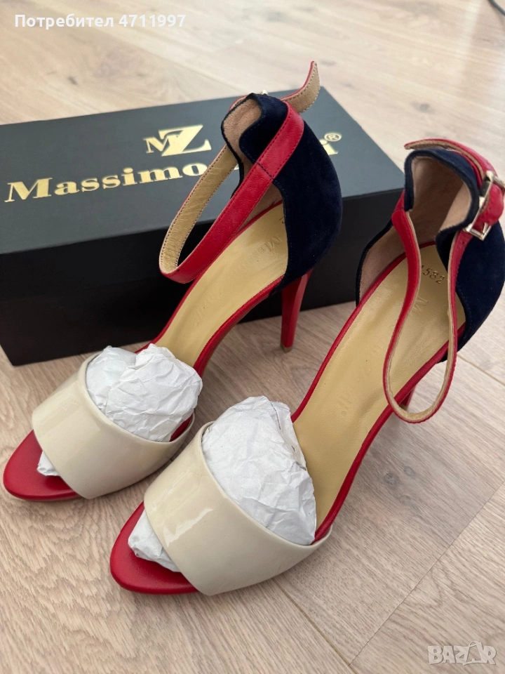 Продавам дамски сандали на ток Massimo Zardi, размер 39 — чисто нови, никога не са носени, с оригиналната кутия.