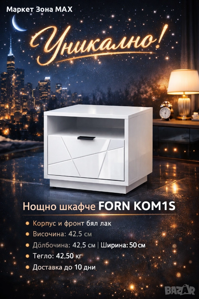 Нощно шкафче FORN KOM1S съчетава модерен дизайн и практичност.