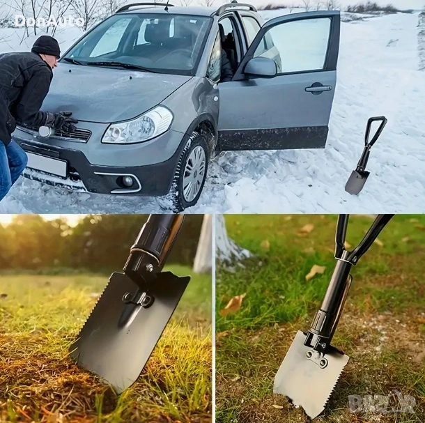 🧺 Компактна лопата – сгъваема и удобна, идеална при затрупване със сняг.