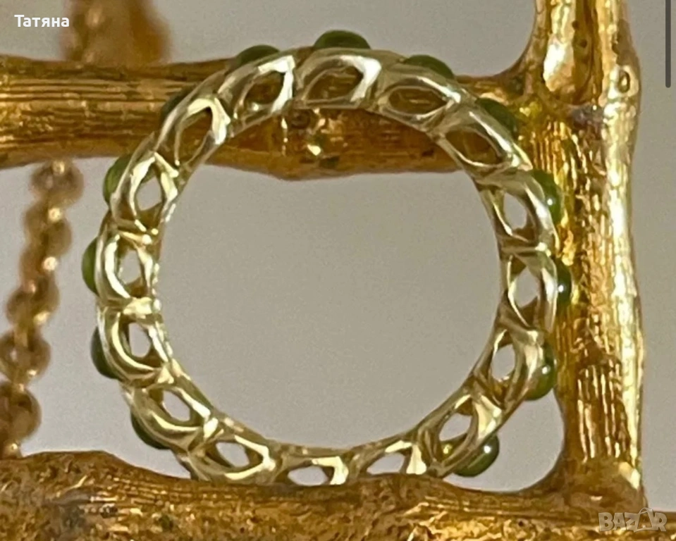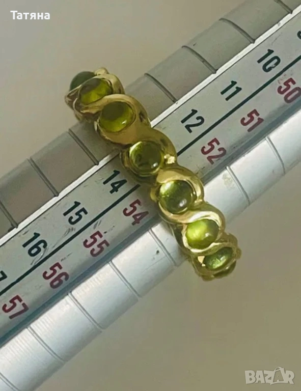 красив позлатен сребърен пръстен с вложки от оливин/перидот. сръбро 925, P.53 → Обява 53136298