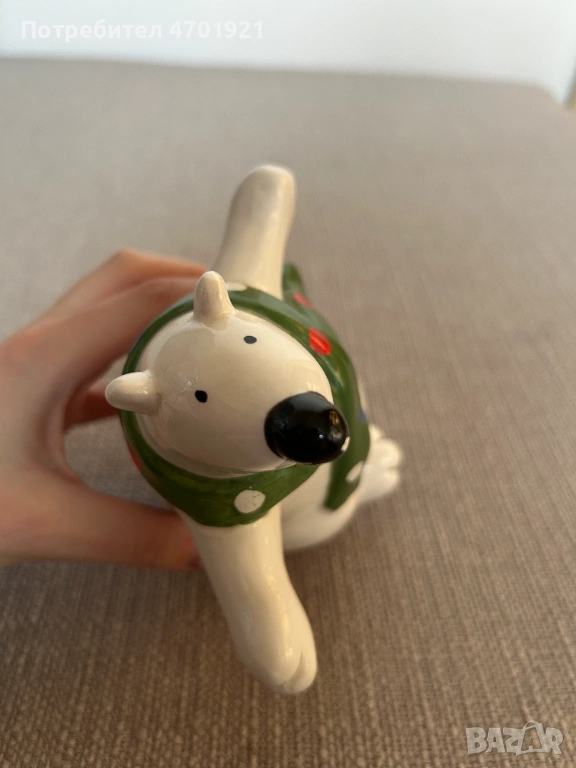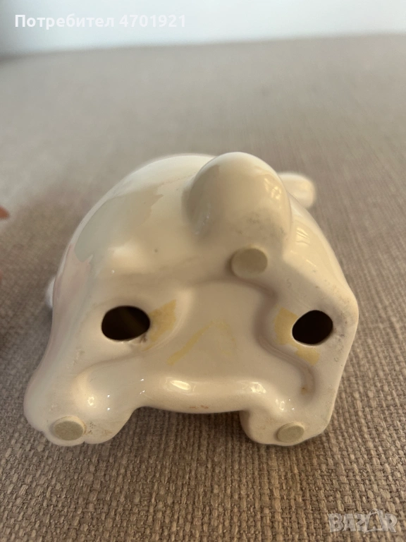 Има малки пукнатини по едната лапа и нослето отпред има обелено (вижда се на снимките).
