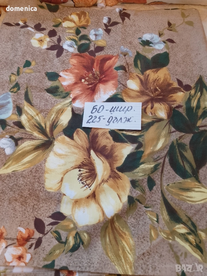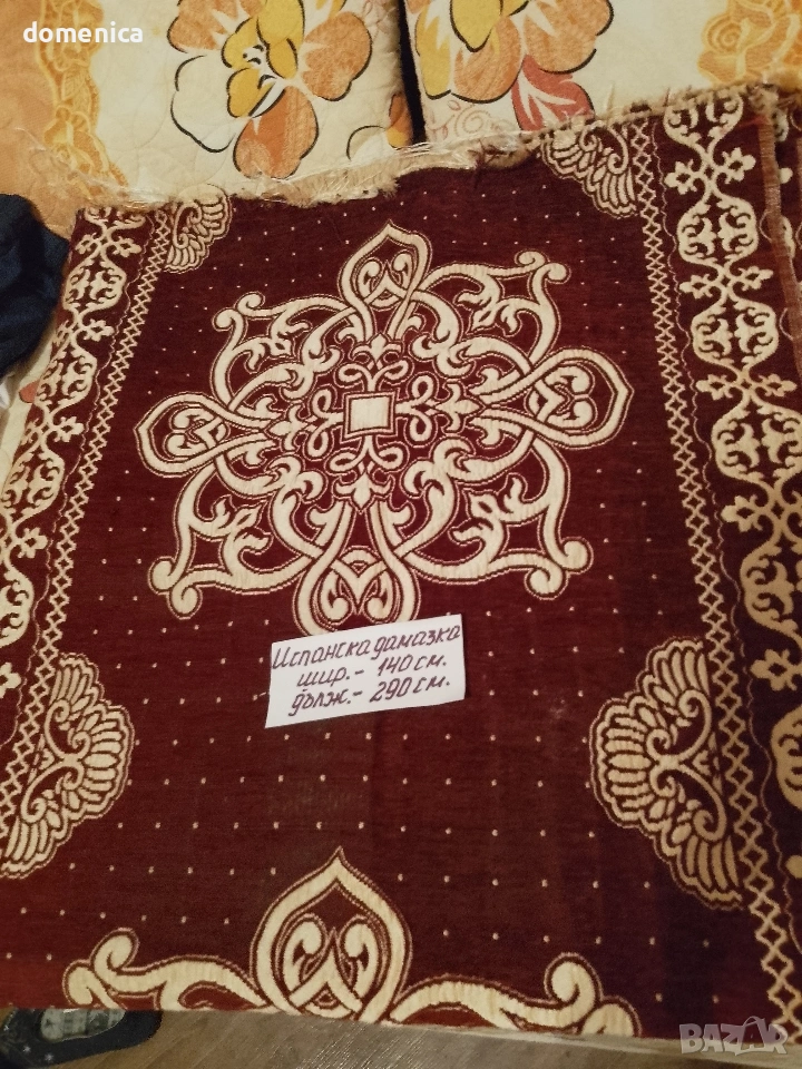 Платовете са памук и лен с различни размери. Цената е за 1 л.м. На последната снимка е испанска, много плътна дамаска за мебели и цената за нея е 10 евро за 1л.м. Може и лично предаване.