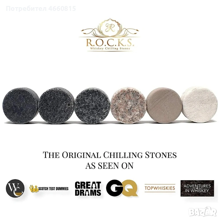 С гранитните камъни R.O.C.K.S. любимата ви напитка ще бъде приятно охладена, без да бъде разредена, запазвайки уникалните си аромати и вкус. Уникалният им стил и функционалност са причина те често да са определяни са за най-добрите охлаждащи камъни за уиски в света.