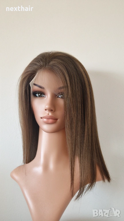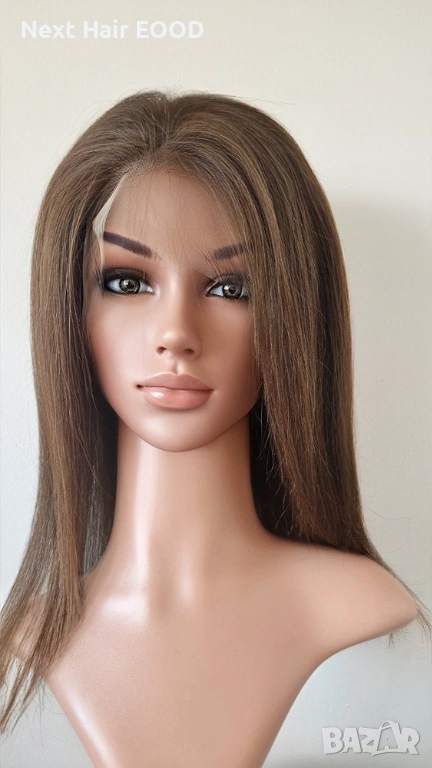Естествена кафява перука 40 см, бразилски косъм, дантела 13x4 → Обява 53136564