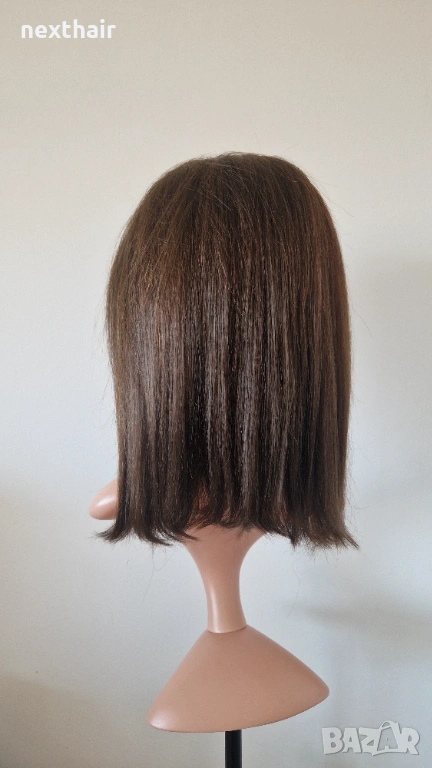 Продавам естествена перука от 100% бразилски косъм. Косата е права, мека и с много естествен вид. Цветът е натурално кафяв. Дължина 40 см.
