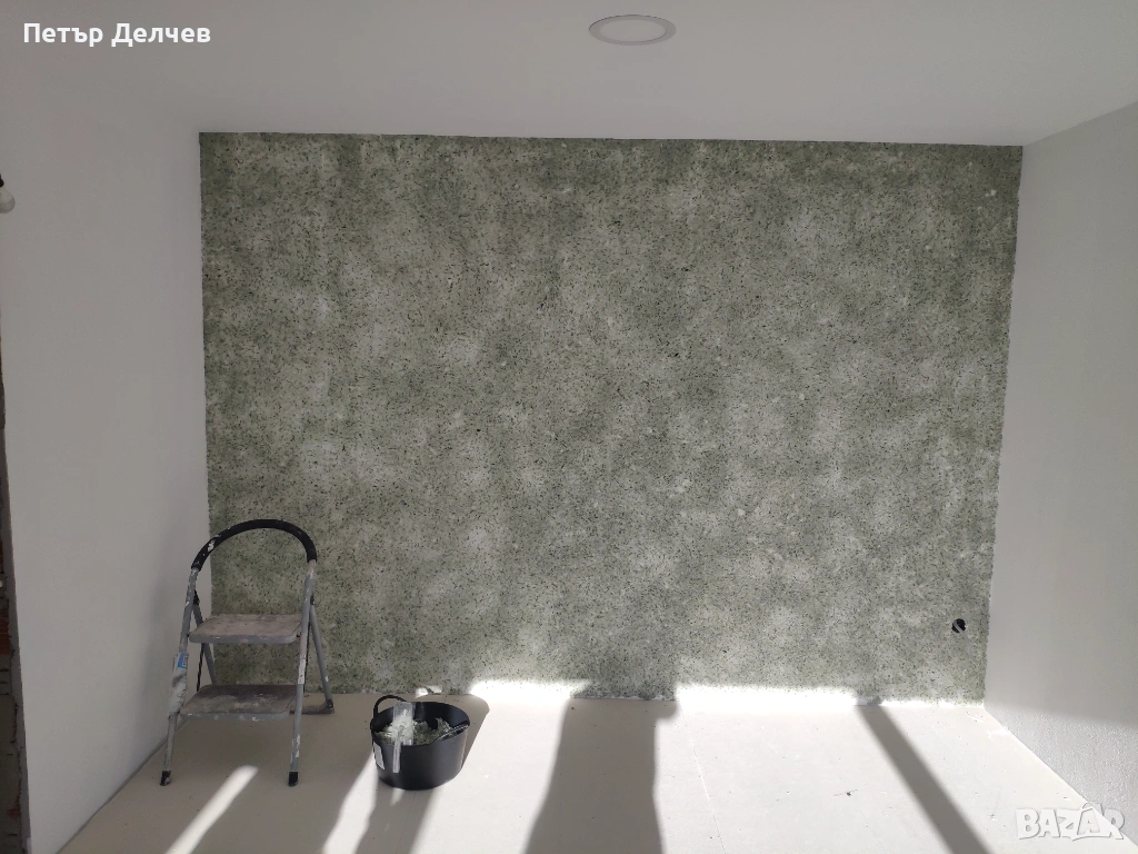 🎨 Полагане на течен тапет – декоративно стенно покритие, което осигурява освен уникален дизайн, отлични акустични свойства.