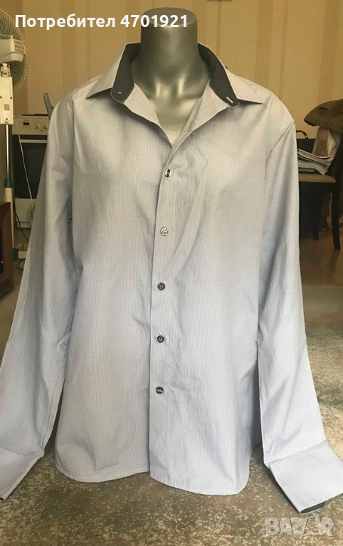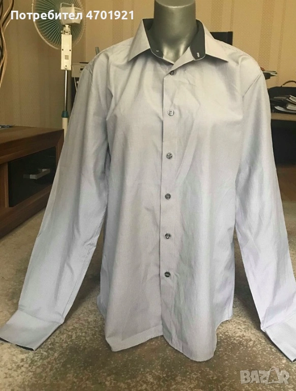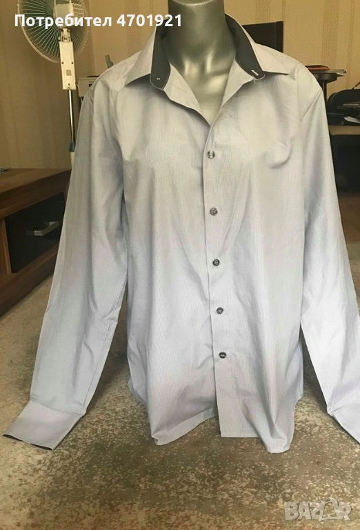 Сива мъжка риза с дълъг ръкав → Обява 53136766