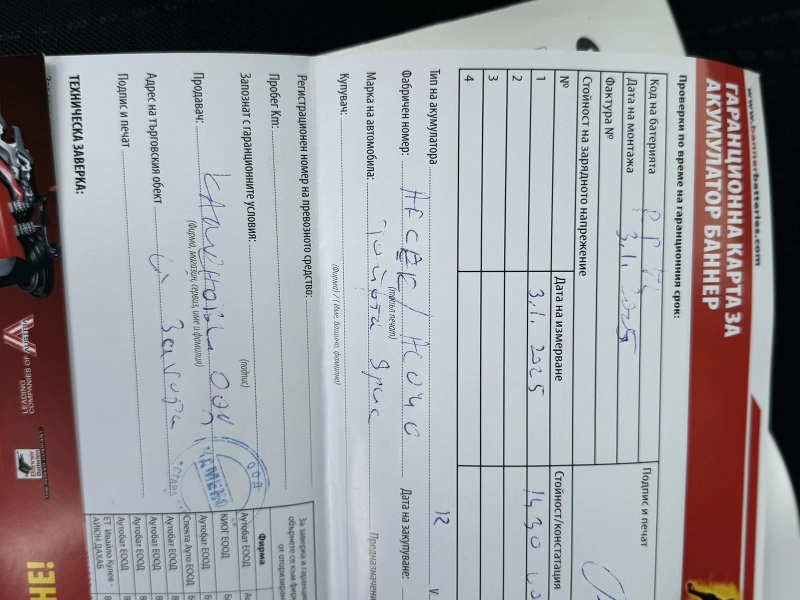 - • Сервизна книжка