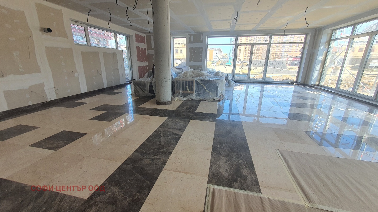 Апартаментът се състои от просторна дневна със кухненски бокс, двор, две спални, кабинет, три тоалетни с баня, един килер и два дрешника. Завършване по БДС. Уникална мраморна настилка във дневната и коридора с подово отопление и в баните.
