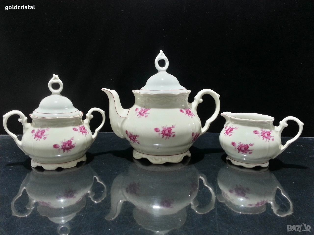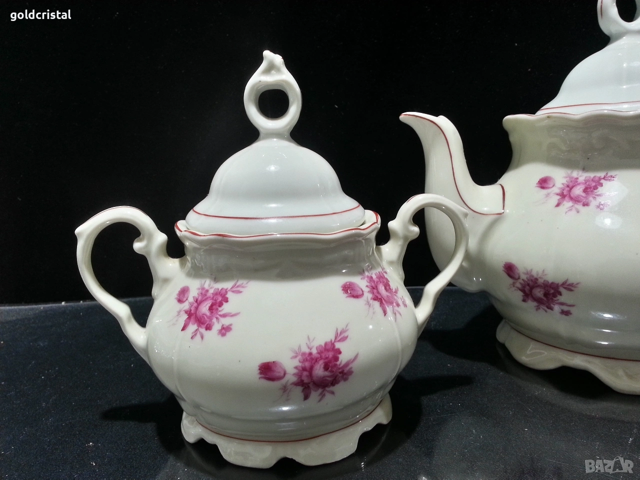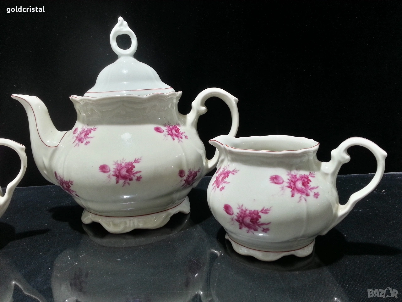 Стар български порцелан барок чайник заханица латиера цвят слонова кост без забележки с маркировки сервиз комплект сет лот ретро арт декор винтидж колекция стари старинни антикварни предмети обзавеждане за дома и семейството подходящи за подарък за ценители и колекционери