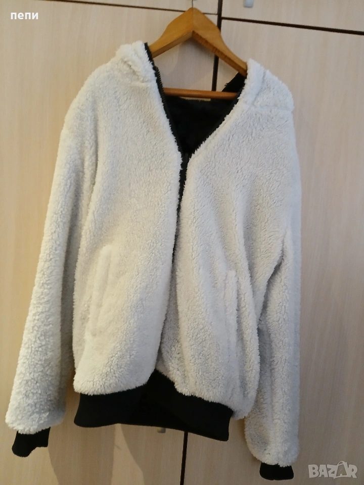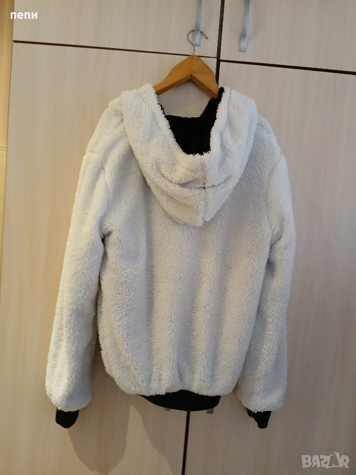 Якето е като ново,слагано е 2,3 пъти с две лица е (черно и бяло)Без никакви забележки.много топло и меко.