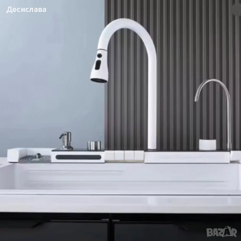 Умна кухненска мивка с изтеглящ се кран – LED дисплей, водопад, филтрирана вода → Обява 53137399