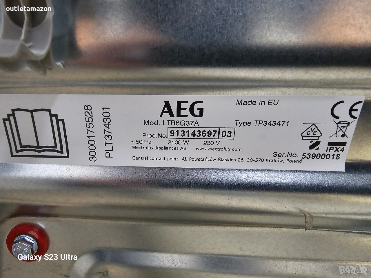 Пералня Aeg LTR6G37A с горно зареждане с капацитет 7 кг от серия 6000, благодарение на технологията ProSense®, претегля прането преди цикъла на пране, за да оптимизира времето и да спести енергия и вода.Спецификации