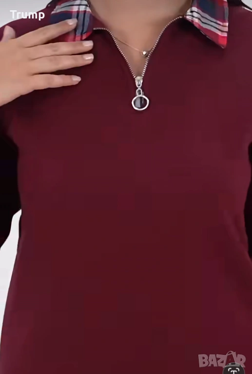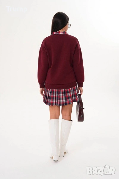 -50% Рокля - туника , мека и топла памучна полар материя,каре, цвят бордо → Обява 53137466