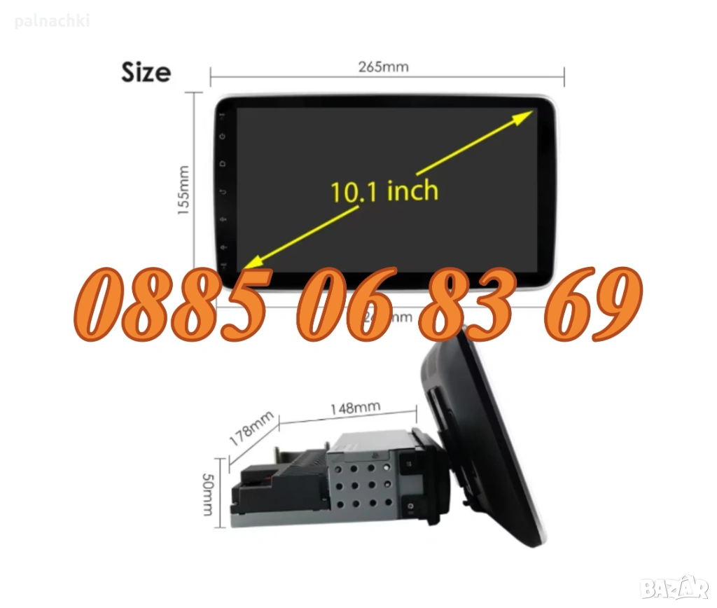 мултимедия Android 14 с 10.1" ротационен екран, GPS, Bluetooth, WiFi, DVR и камера за заден ход
