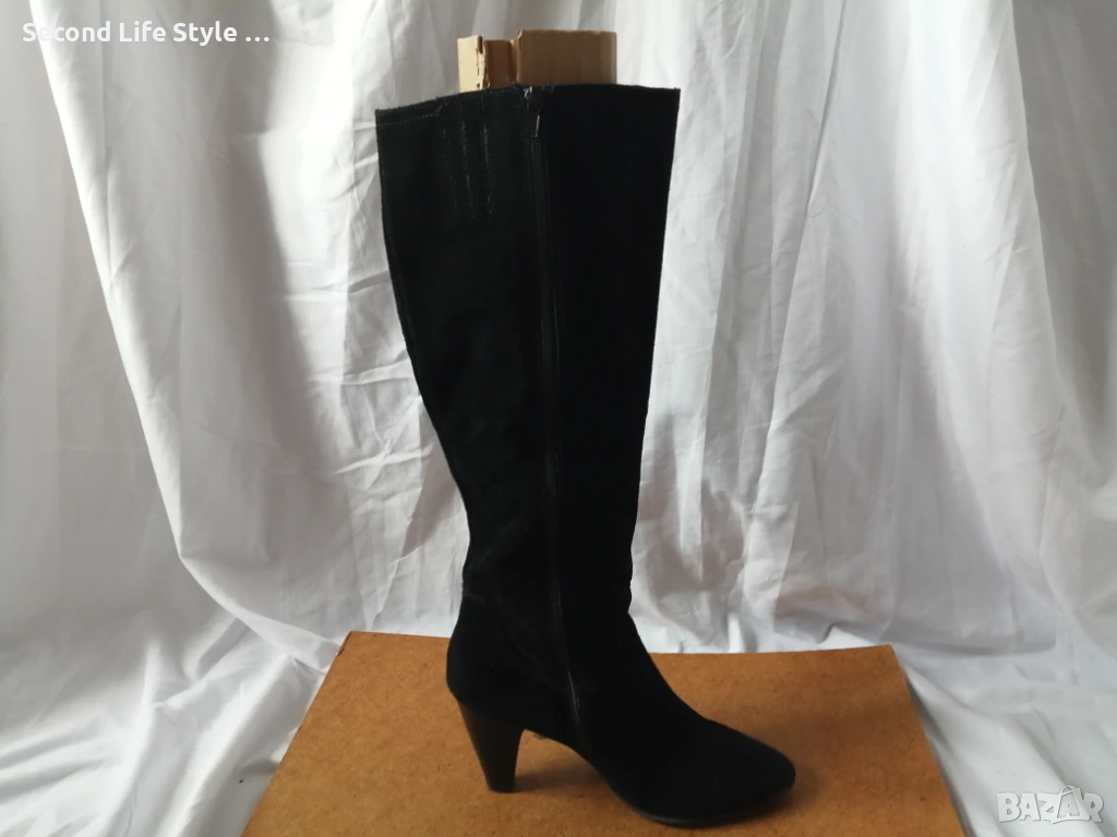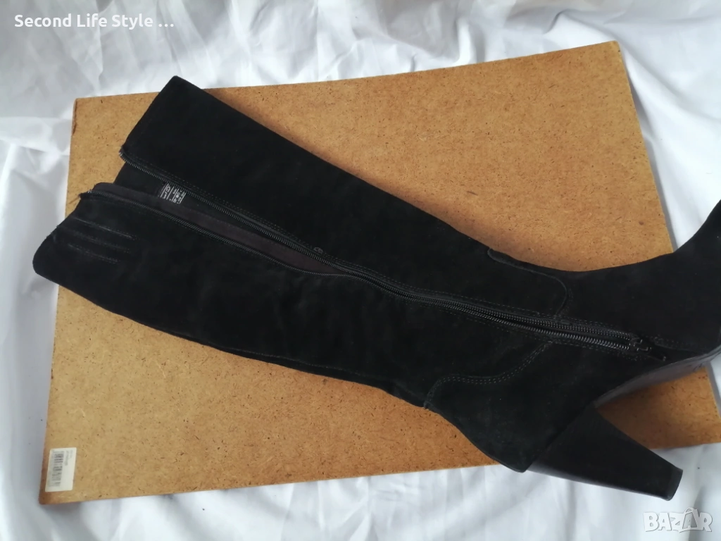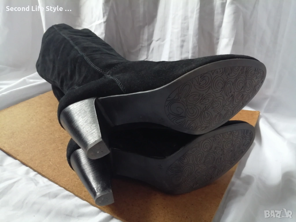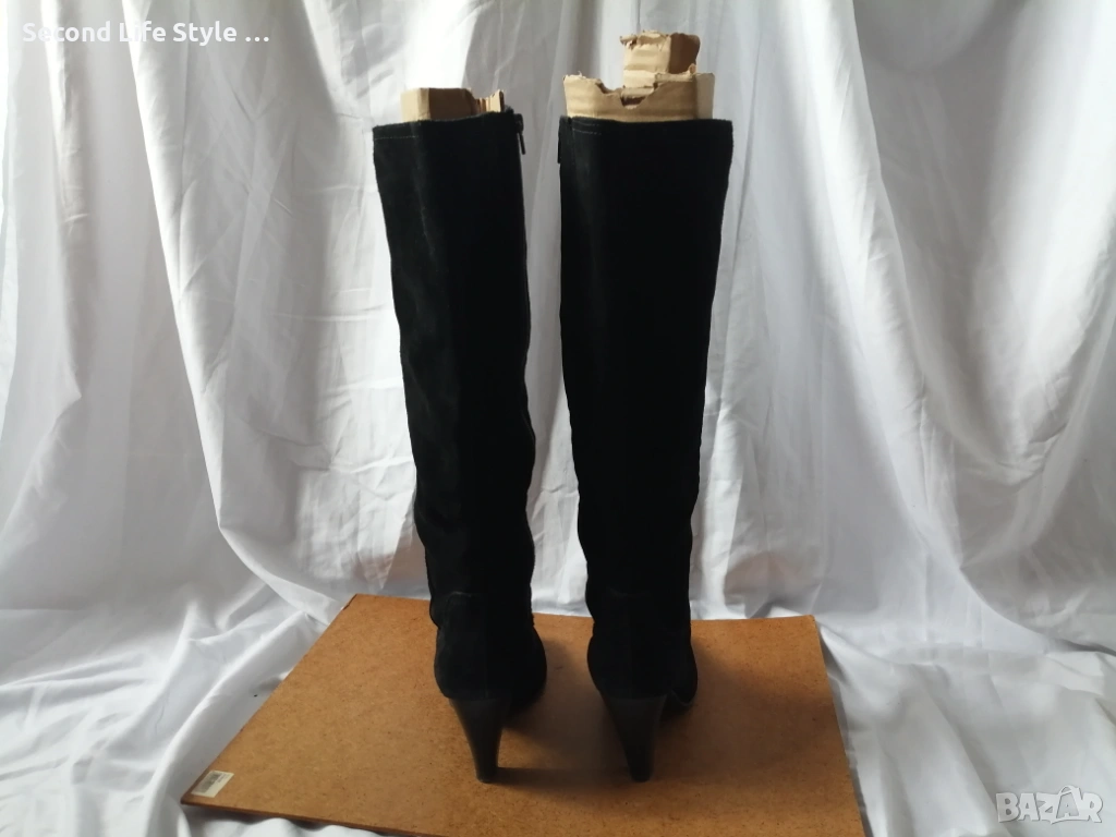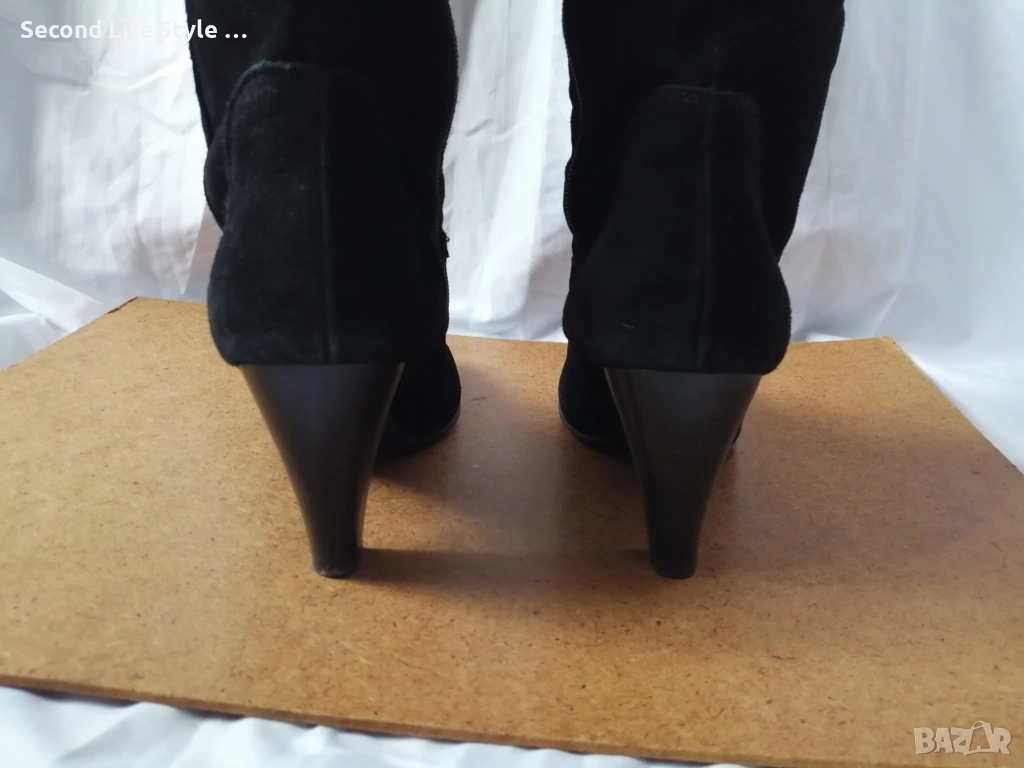 № 41 дамски ботуши естествен велур - с висок ток; черен цвят - марка Janet D.