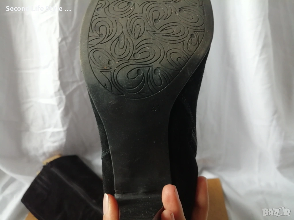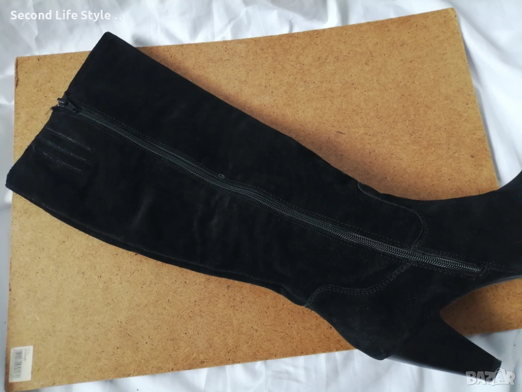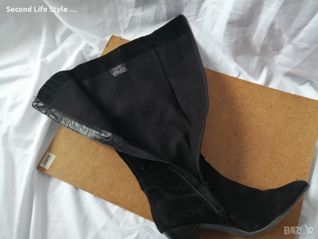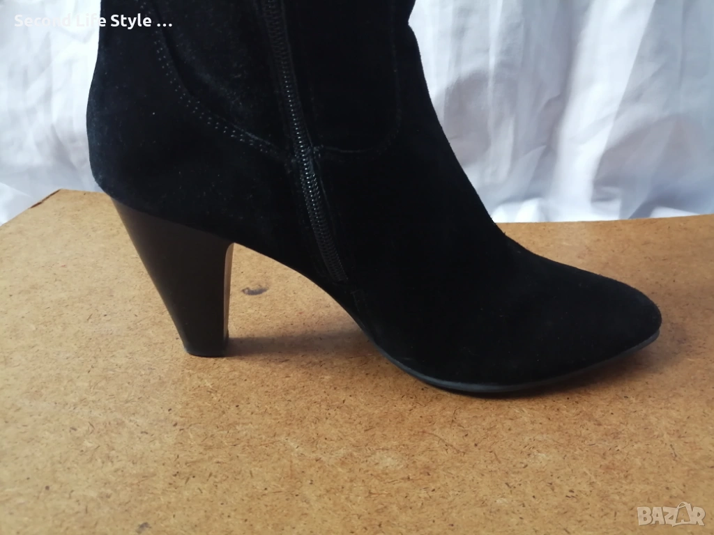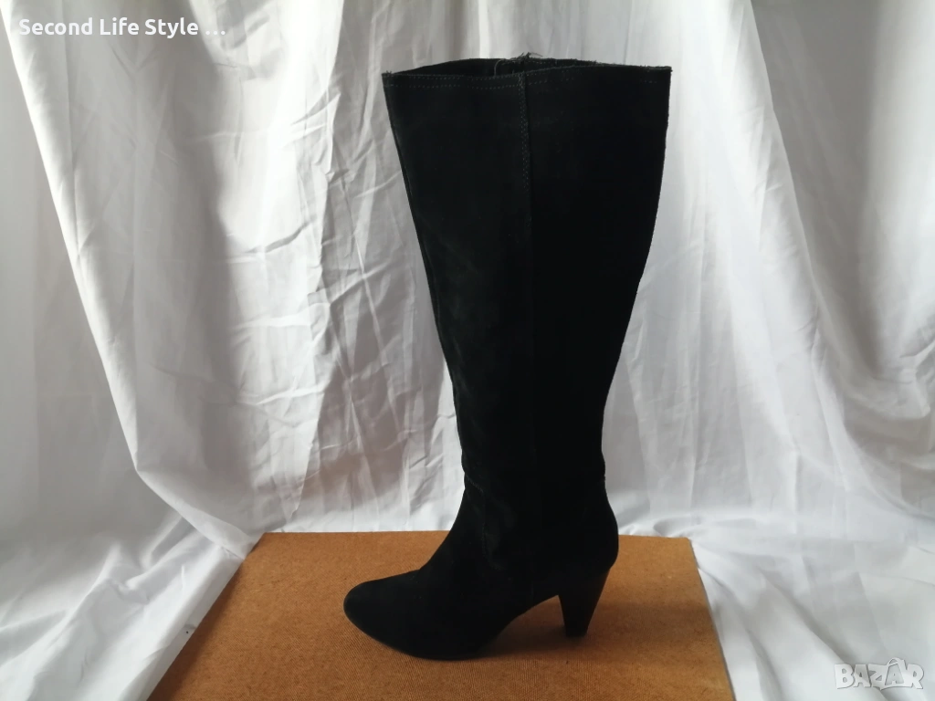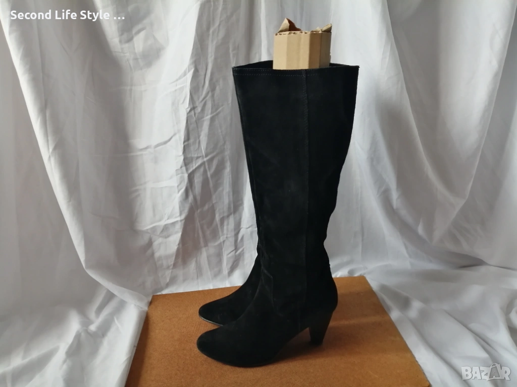 № 41 дамски ботуши естествен велур - с висок ток; черен цвят - марка Janet D.