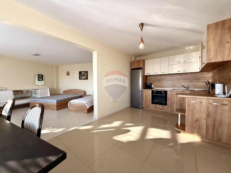 Жилище находится в центральной городской части Балчик, на достаточно живописном, спокойном и одновременно коммуникативном месте, с постоянно живущими. На около 10 минут пешком расстояние до моря и набережной аллеи. В районе есть бензиностанция, магазины, заведения и бары; аптеки и больница; школа и детский сад. Ботанический сад Балчик на 500 м. В непосредственной близости до Архитектурено-паркового комплекса Дворец , который всего лишь на 5 мин пешком. Аква - парк Албена - 7.5 км, курортный комплекс Золотые Пескии - 15 км, Аладжа монастырь - 16 км.