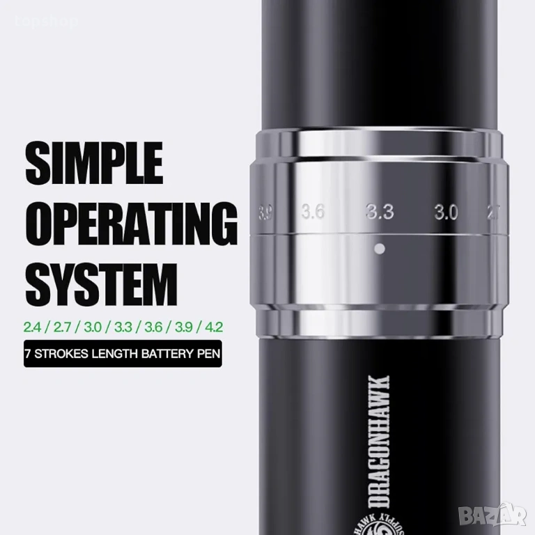 Нова проверена безжична машинка за татуировки Dragonhawk, 2 батерии 1500mAh, 7 дължина на ходовете 2.4 мм - 4.2 мм