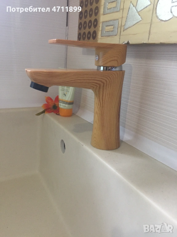 Пластмасов кран за умивалник Fokus бяло, капка, дърво.
