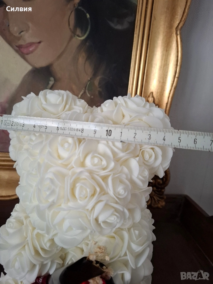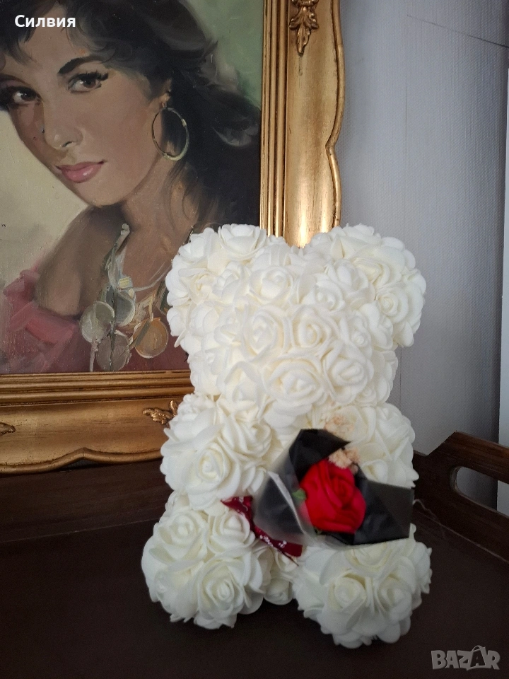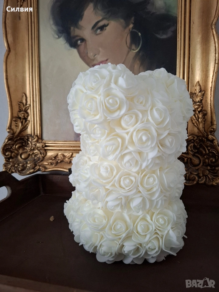 Мече от изкуствени рози, известно още като "Rose Bear". Тези мечета са ръчно изработени от стотици малки изкуствени розички, често от пяна или полиуретан, които изглеждат като истински, но издържат завинаги.