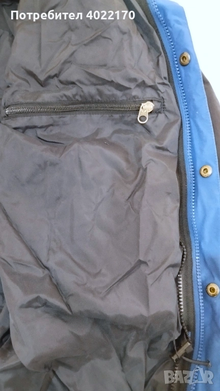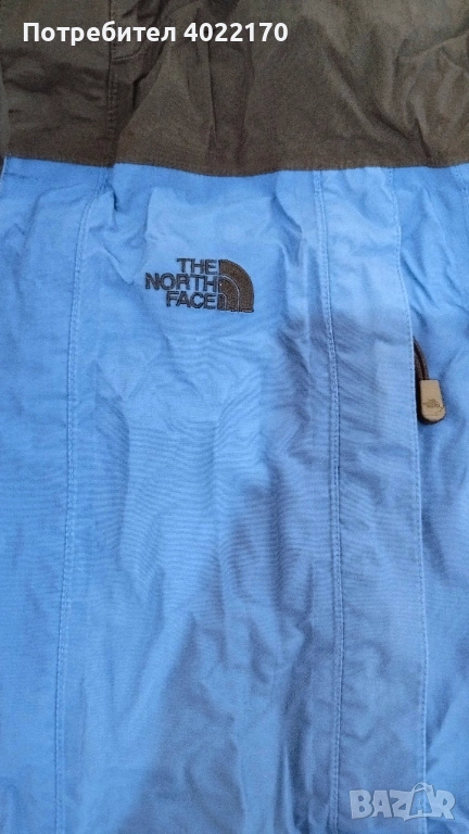 The North Face HyVent ретро скиорско яке с качулка, която може да се сгъва в яката, водоустойчива и ветроустойчива дишаща материя, с 4 предни джоба с цип и 1 вътрешен джоб с цип. Размер M. В много добро състояние, единствено има една забележка на лявото рамо - разпорено около сант-сант и половина, което е на външният плат (вижда се на една от снимките) - в момента е залепено с лепило, за да не се разкъсва още.