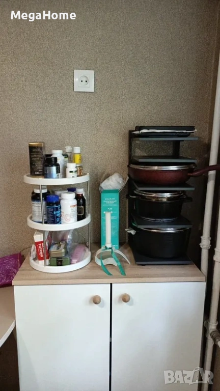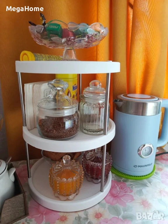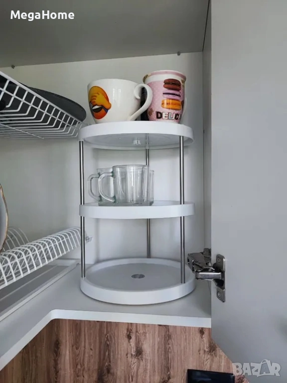 Трите нива осигуряват достатъчно пространство, като същевременно пестят място и поддържат всичко подредено и лесно достъпно. Благодарение на плавния въртящ механизъм, нужните вещи винаги са под ръка без излишно разместване.
