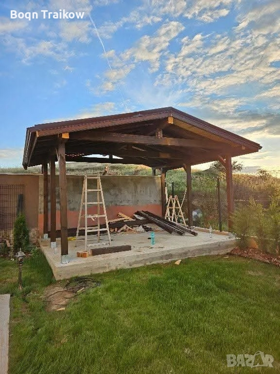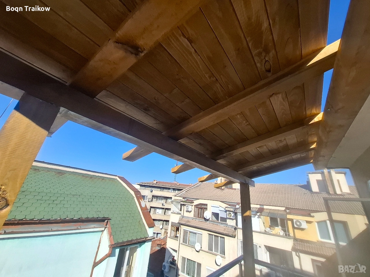 изработка на дървени перголи - изработка на навеси от дърво, навеси на тераси, навеси за летни кухни, гаражни навеси за автомобили и зимни градини. - повдигане на тавански стаи - изграждане на дървени козирки - цялостни ремонти дървени конструкции