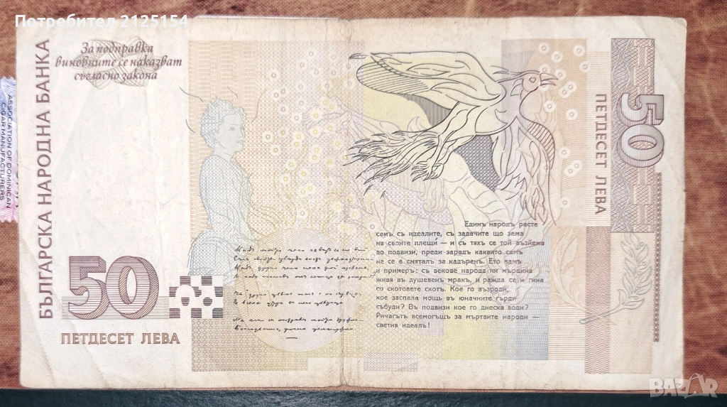 3. 50 лв.,емисия 2019 г.,Пенчо Славйков,интересен номер ,цена - 100 лв / 51,12 евро.