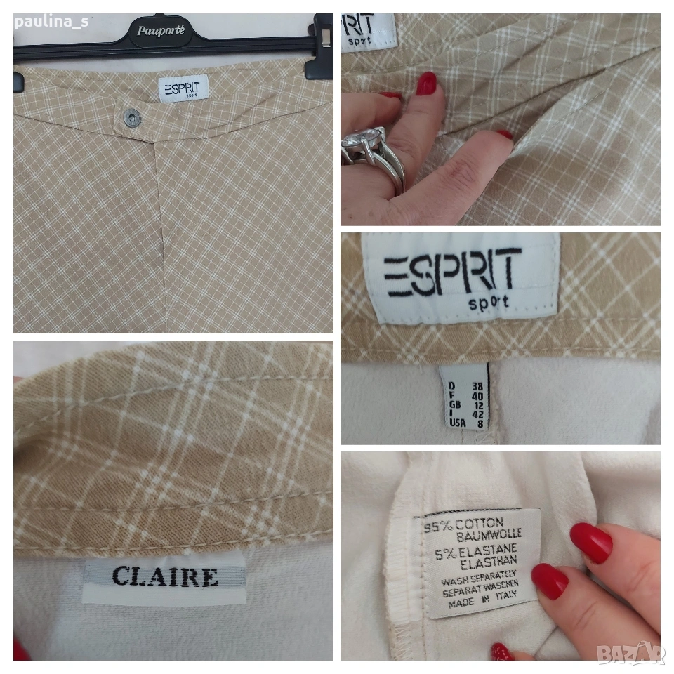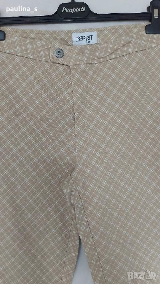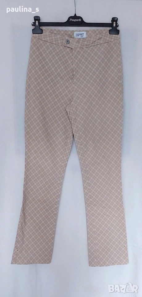 2️⃣ S / XL - Винтидж! "Esprit" Claire - унисайз. Цената е крайна, без пазарлъци 15 евро. Брандов дънков панталон модел bootcut (с оширени крачоли). Платът е доста еластичен, като цветът е бежово с бели ромбоидни каренца. Моделът е прилепващ за тялото, като джобовете отпред са хоризонтални и дискретни, не променящи крайният ефект на дрехата. Подхожда на всичко, без дефекти, с качеството, гарантирано от бранда.
