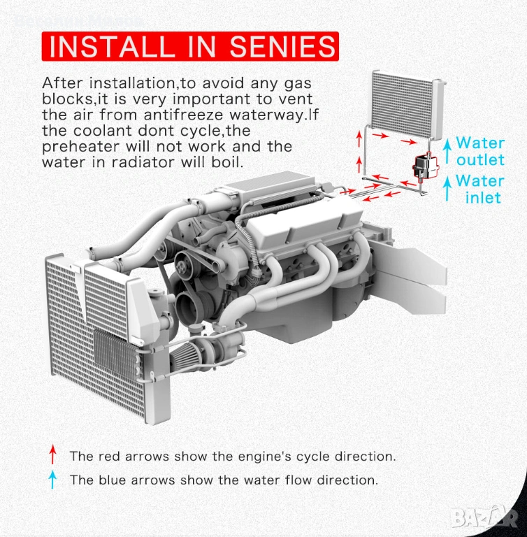 НАГРЕВАТЕЛ ЗА АНТИФРИЗ/ВОДА,ПЕЧКА ЗА КОЛА,ДЖИП,БУС...