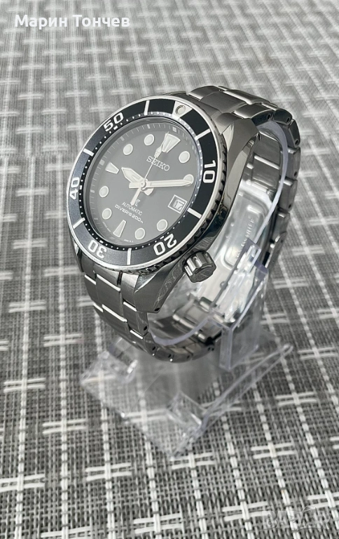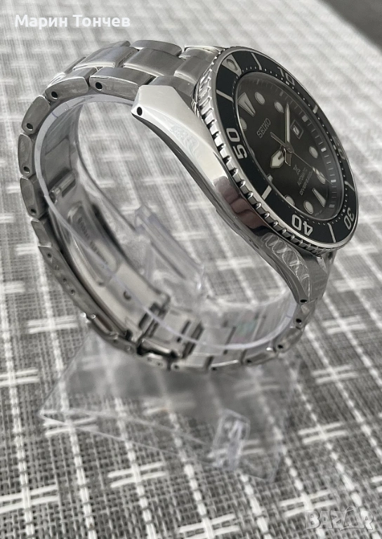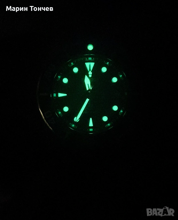 Циферблата е черен, със светещи стрелки и индекси, бяла дата на 3ч и капак - гравиран, плътна стомата на винт. Водоустойчивост от 200 метра и коронка, също на винт. Еднопосочно въртящ се стегнат безел, с ясни и отчетливи 120 клика.Стъклото е сапфир кристал с вътрешен антирефлекс. Под капака движи японски механизъм Caliber 6R35 с 24 камъка и завидните 70 часа резерв - работи точно