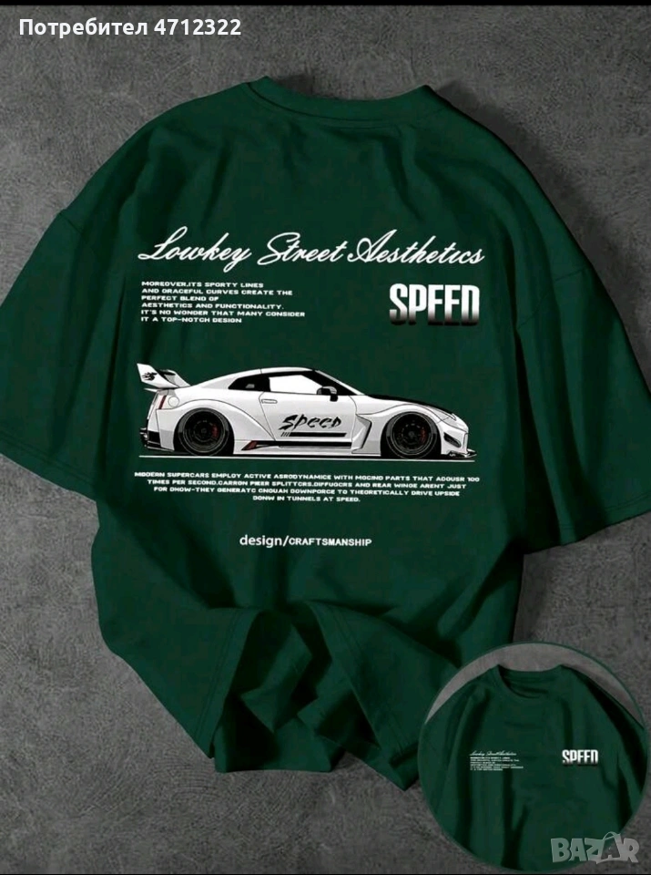 Модерна streetwear тениска с динамичен автомобилен дизайн и надпис “Lowkey Street Aesthetics / SPEED”. Подходяща за ежедневно носене, комбинира стил, комфорт и спортна визия.