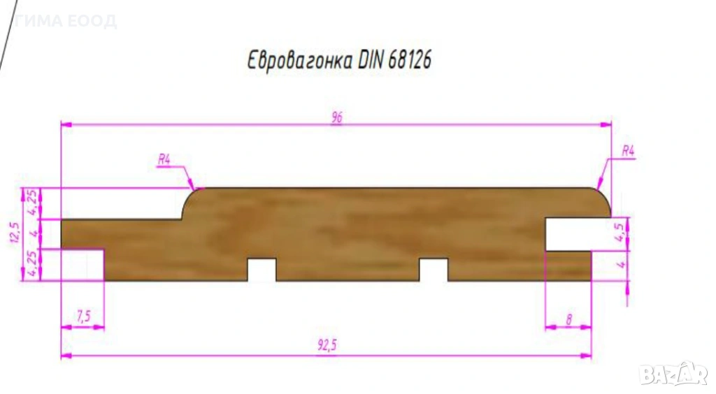 Четиристранно профилирана дървена ламперия качесто АВ по стандарт DIN 68126, с гладка лицева повърхност, без падащи чепове от първокачествена иглолистна дървесина.