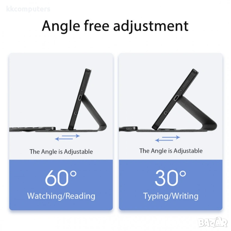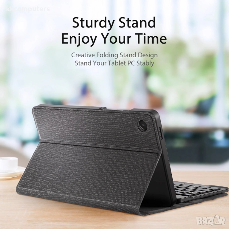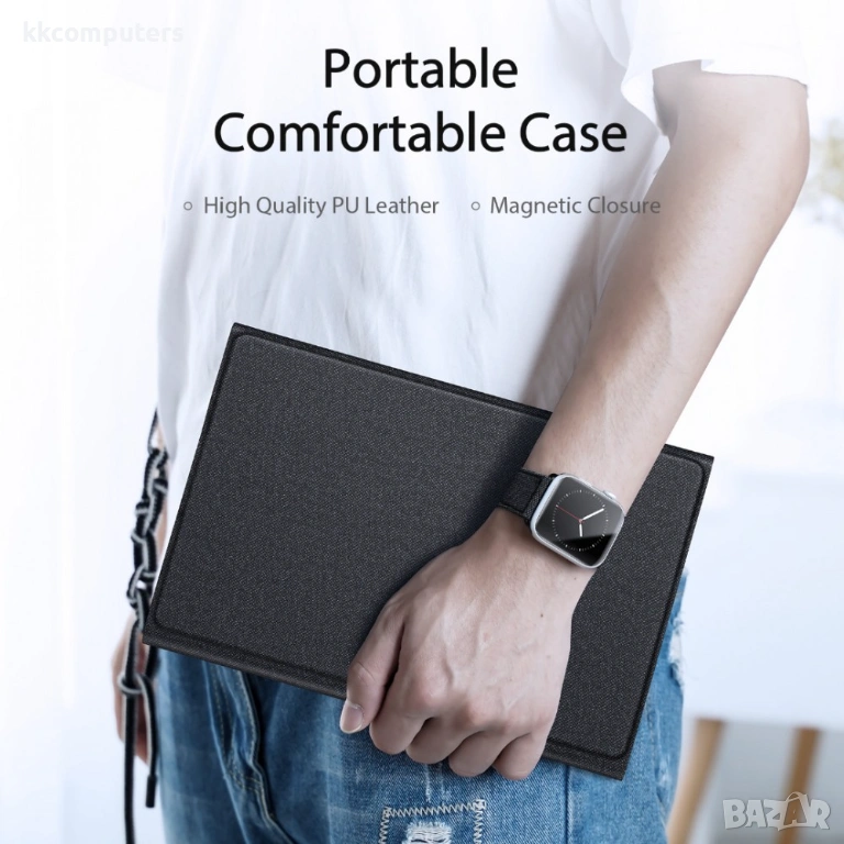 Калъфът може да се използва и като стойка, което позволява удобно гледане на видео, онлайн срещи или сърфиране в интернет без използване на ръце. Тънкият и лек дизайн го прави лесен за пренасяне и подходящ за мобилен начин на живот.