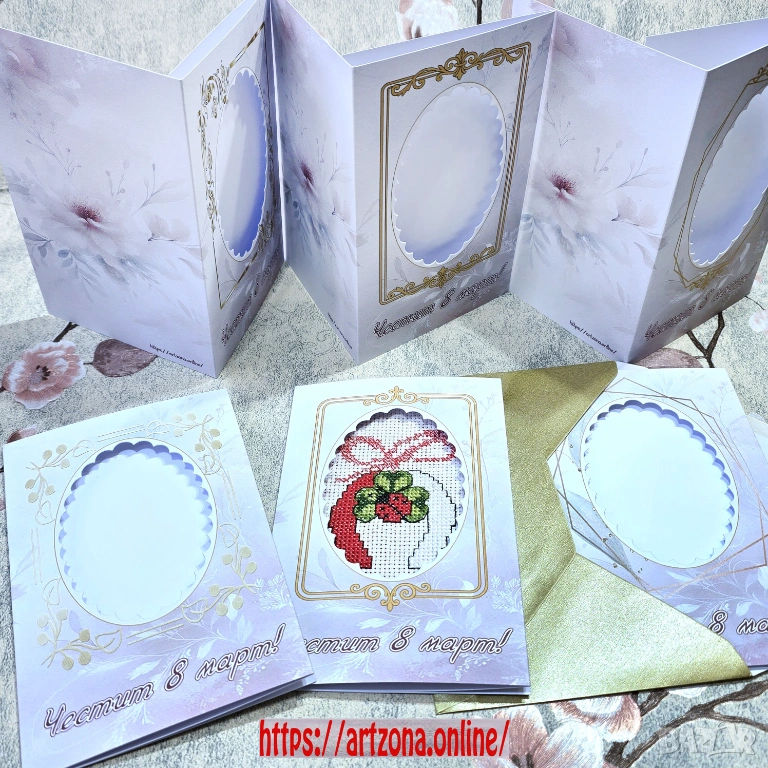 Комплект 6 бр. Тройно прегънати заготовки за картички за 8 март , снимка 1 - Гоблени - 53139825 Комплект 6 бр. Тройно прегънати заготовки за картички за 8 март , снимка 2 - Гоблени - 53139825 1/2