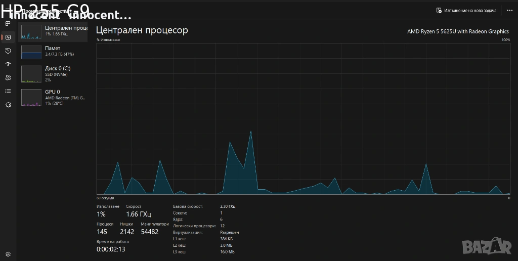 Процесор: AMD Ryzen 5 5625U – 2.40 GHz