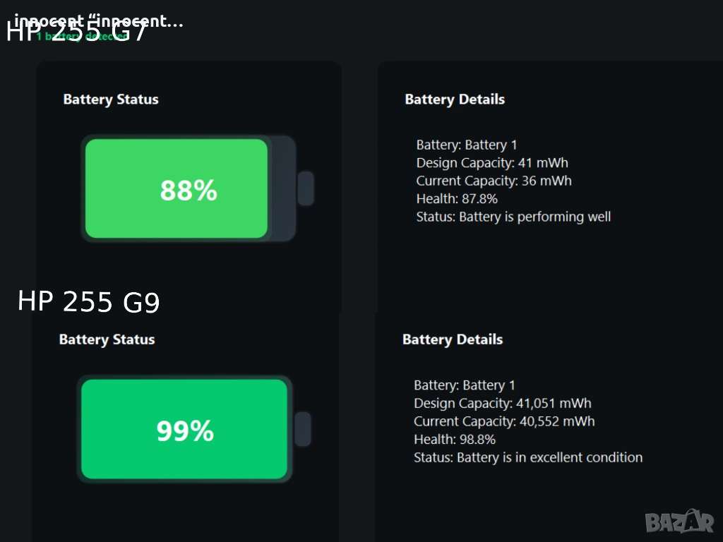 Продавам два лаптопа HP 255 – модели G7 и G9. И двата са на Windows 11 и се продават в пълен комплект или отделно. Всеки един идва с: