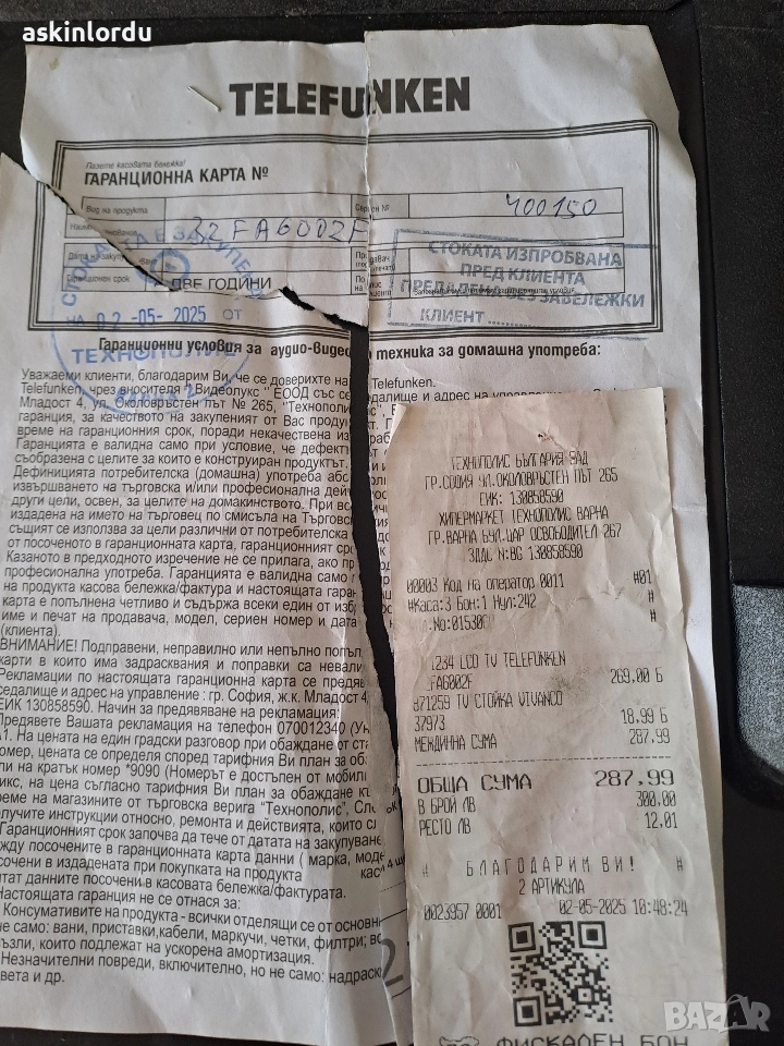 Телевизора е със счупена матрица както се вижда на снимките.