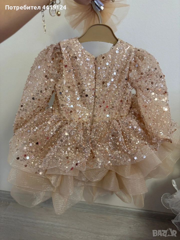 Златиста рокля подходяща за момиченца от12-18м ома към нея и подарък ефектна фиба за коса