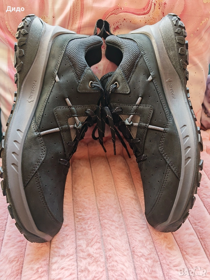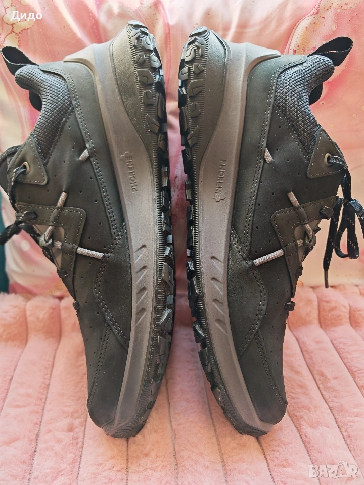 ECCO PHORENE са модерни и ежедневни обувки, които съчетават стил, иновативни технологии и висококачествени материали, за да предложат перфектния баланс между функционалност и комфорт. Истинският набук и омасленият набук са изработени в собствените кожарски цехове на марката, използвайки екологичната технология ECCO DriTan. Този материал е устойчив на външни влияния и осигурява перфектно прилягане благодарение на своята мекота и еластичност. Меката текстилна подплата поддържа комфортен вътрешен микроклимат. Уникалната, ултралека подметка ECCO PHORENE предлага повишено омекотяване и гъвкавост. Вдлъбнатината на петата подобрява стабилността при походка и намалява ударите. Уникалната самопочистваща се гумена подметка Michelin с две зони на сцепление и дълбок, многопосочен модел на грайферите осигурява стабилност дори върху хлъзгави камъни и мокра трева. Иновативната технология ECCO FLUIDFORM създава анатомично правилна подметка, която следва естествените контури на стъпалото. Подметката е прикрепена към горната част без лепило или шевове, което води до гъвкаво, меко и издръжливо покритие.