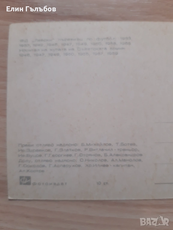 За своите вече близо 60 години картичката(снимката) на най-обичаният и най-титулованият футболен отбор в Бг,а и извън пределите на страната Левски е в перфектен вид и състояние.