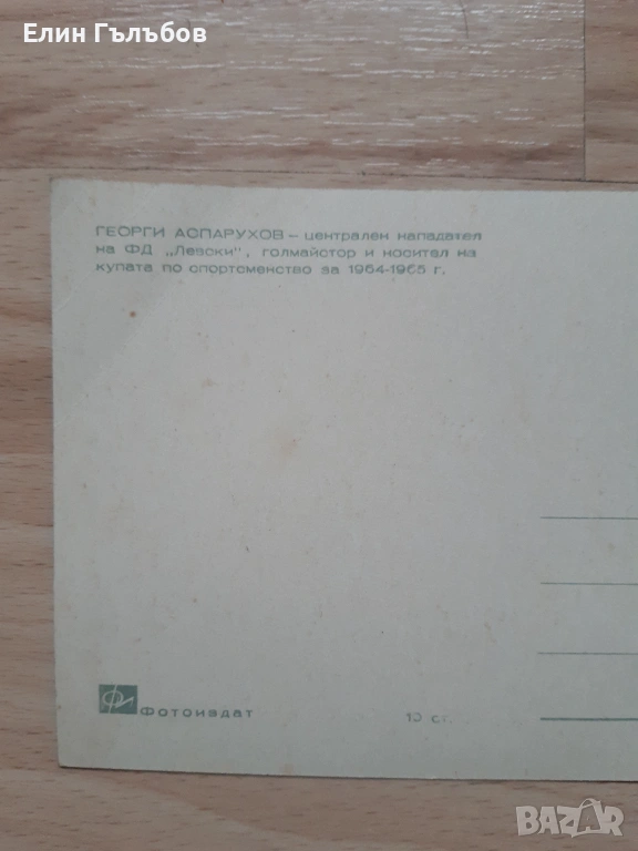 -5.Картичка (снимка) на Георги Аспарухов-Гунди.Картичката на Гунди е цветна,което за тогава е изключителна рядкост и за това я прави по-ценна и скъпа.От 1965-то год.картичката на централният нападател на Ф.Д.Левски-голмайстор и носител на Купата за Спортсменствоза 1964-1965-та година.УНИКАЛНА!