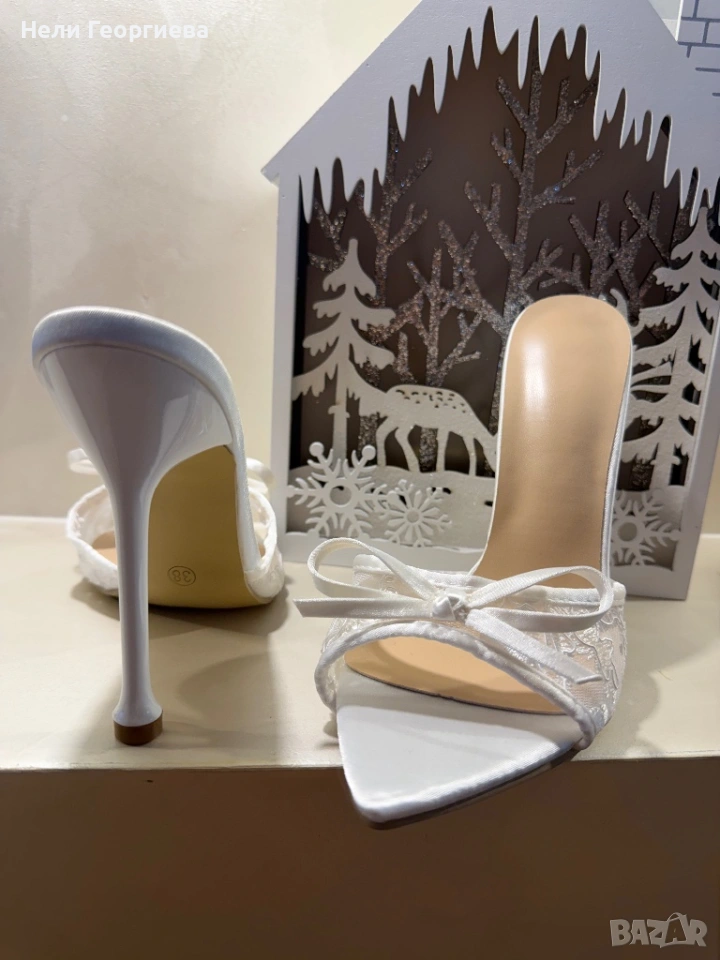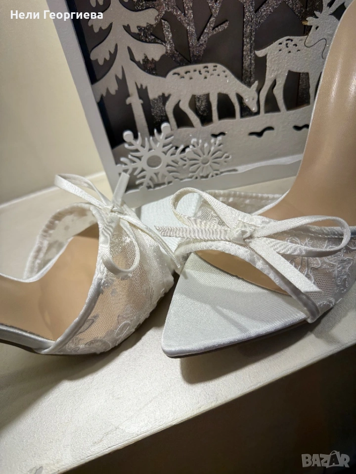 Много нежни дантелени обувки, 38 размер, но са леко умалени, 11 см. ток. Обувани са веднъж за фотосесия.