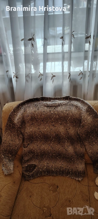 Amade & Roma – меланж пуловер в кафяво-сиво със ситни точици; размер: при интерес давам точни мерки.