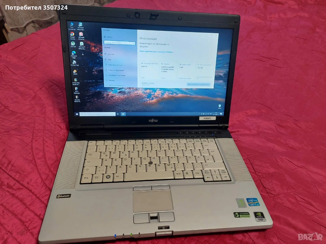 продава се 4 ядрен лаптоп FUJITSU исталиран и почистен и готов за употреба характеристики. хард диск-250 гб рам памет-8 гб процесор- Intel Core i7-2620M / 2.70 GHz Дисплеи-15.6 инча Видео карта NVIDIA Quadro 1000M 2GB Windows-10 на български език активиран Батерия държи по 2-3 часа Офис пакети също са му качени на български език