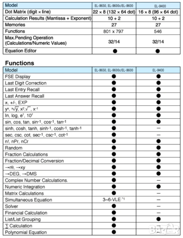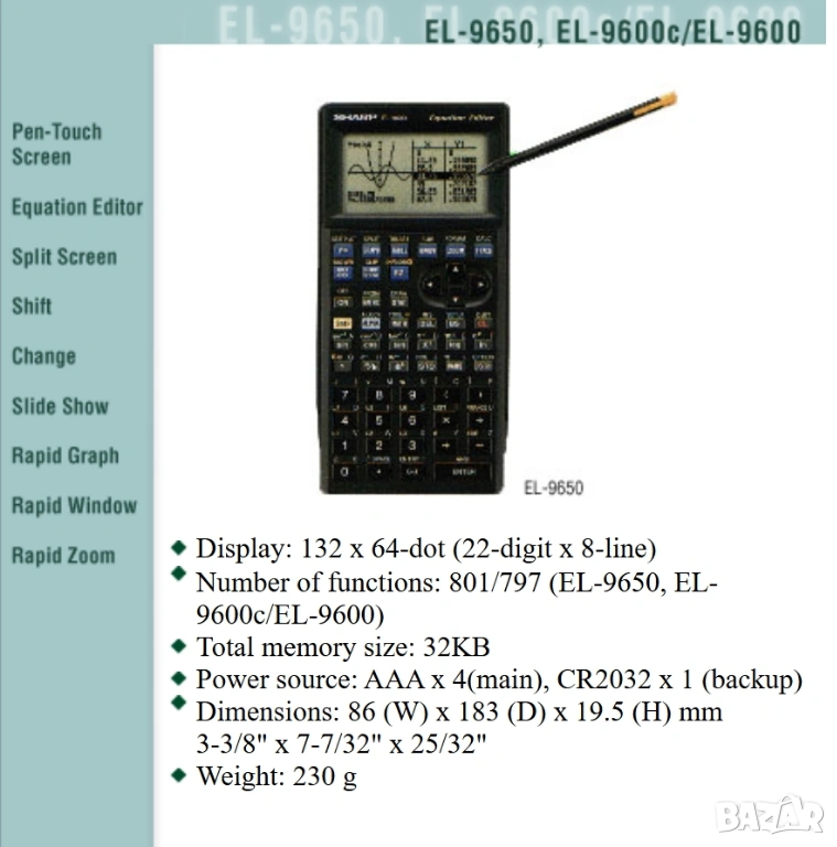Sharp EL-9600 Графичен калкулатор Редактор на уравнения Калкулатор.